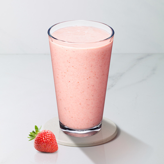 6. 완성된 딸기 바나나 주스를 컵에 담아줍니다.