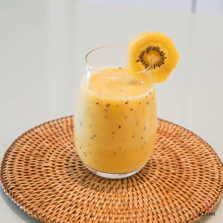 8. 완성된 키위 바나나 주스를 컵에 담아줍니다.